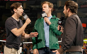 Jason Sudeikis hosted WWE RAW last night with his Going The Distance castmates Justin Long and Charlie Day. Photos of the trio hosting are included after the jump.
